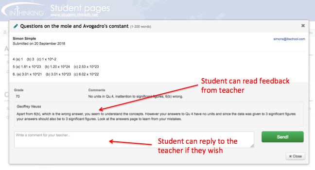 Student reads feedback and can reply to the teacher if he or she wishes.