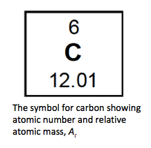 - masses of atoms are compared on a relative scale to 1/12 of 12C and are expressed as relative atomic mass, Ar, and relative formula or molecular mass, Mr.