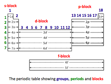 - The periodic table is arranged into four blocks. These are associated with the four sub-levels - s, p, d, and f.