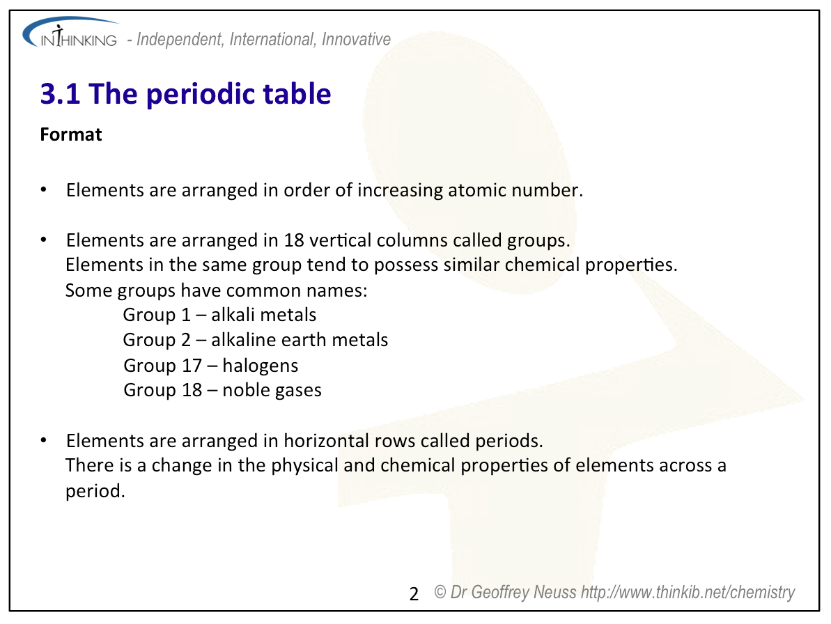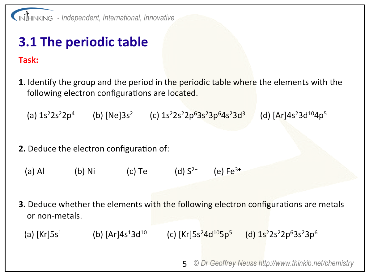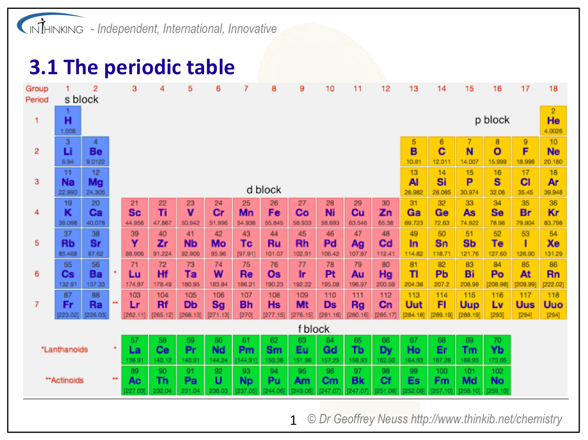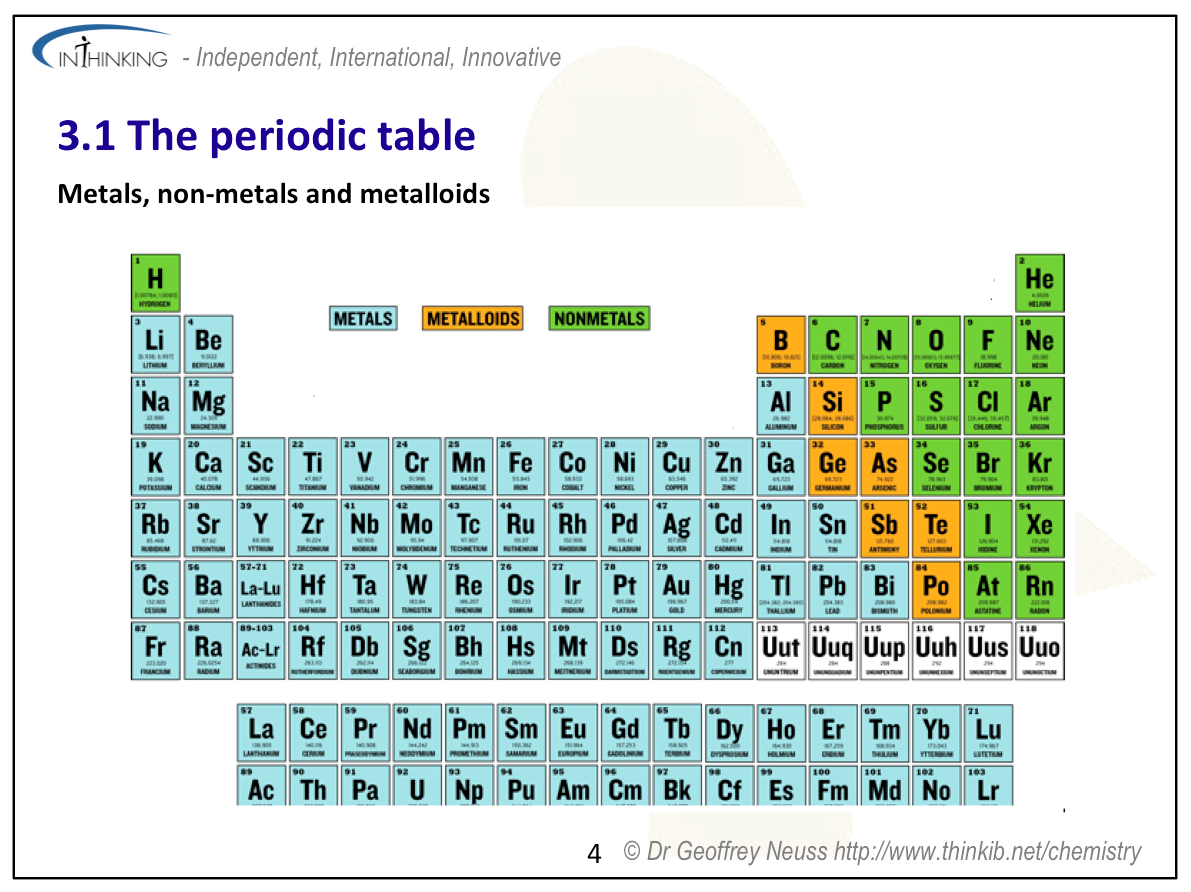 For examples and more links to International mindedness, Theory of knowledge, utilization etc. see separate page which covers all of Topics 3 & 13: Periodicity.