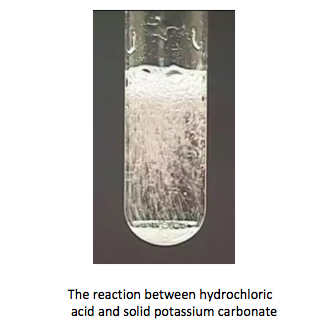 HCO3–(s) + H3O+(l) → CO2(g) + 2H2O(l)