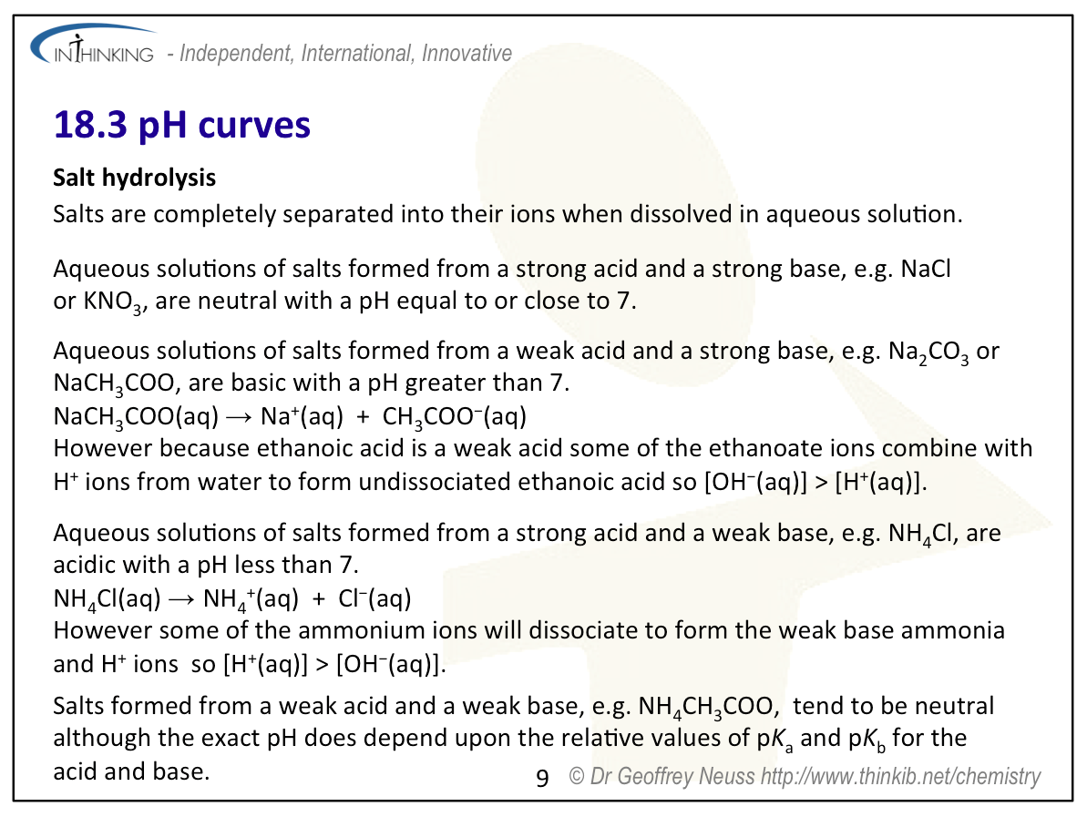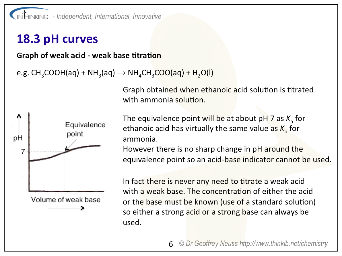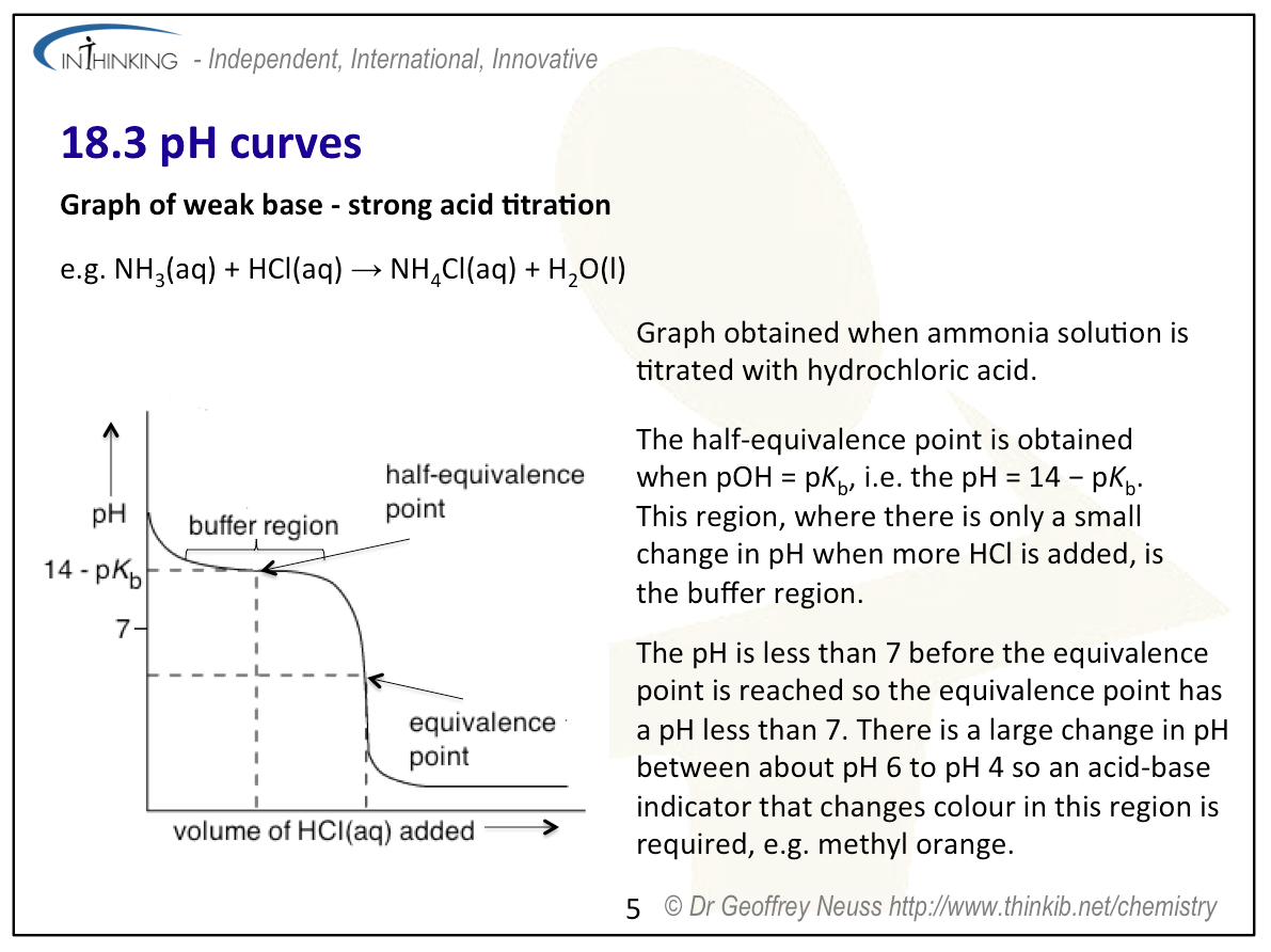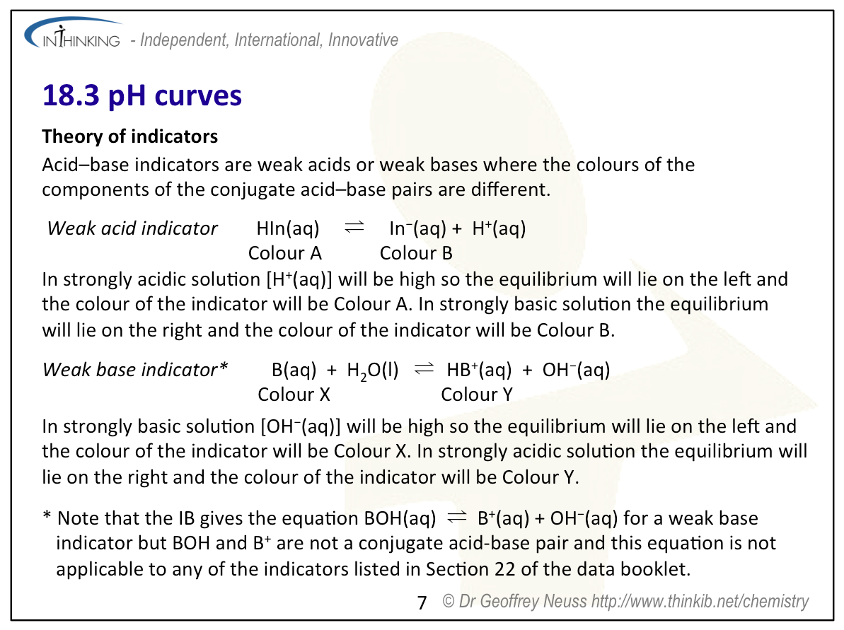 Written specifically for students to provide help and support for the IB Diploma chemistry programme this page provides full coverage of the syllabus content of Topic 18.3 pH titration curves. It encourages you to think critically and provides many questions with full worked answers so that you can monitor and improve your knowledge and understanding.