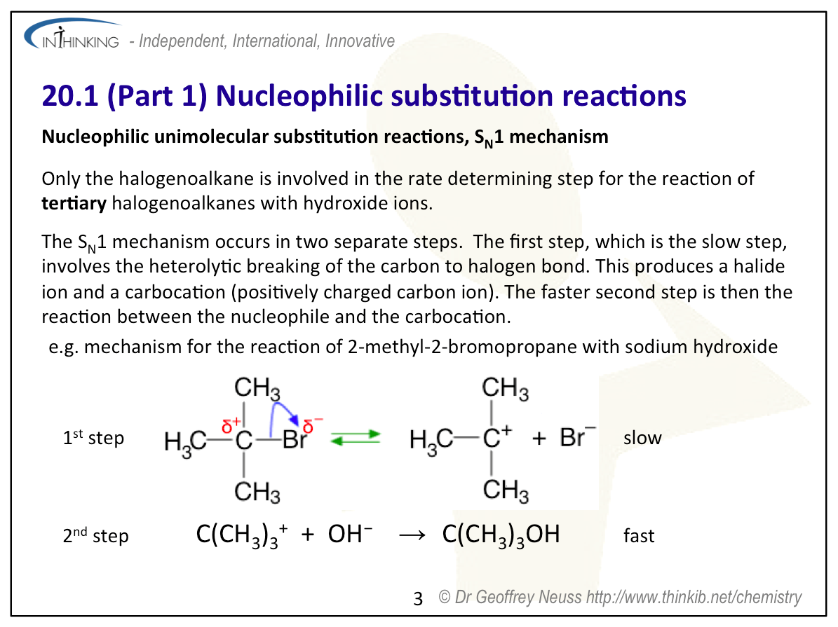 3. SN1 reactions are actually explained (rather than just described) in this good video by Surrey University.