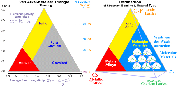 3. An excellent video describing and explaining how van Arkel- Ketelaar triangular bonding diagrams work. The discussion then goes further to look at tetrahedral bonding diagrams. It will give you a really good understanding of how it all works.