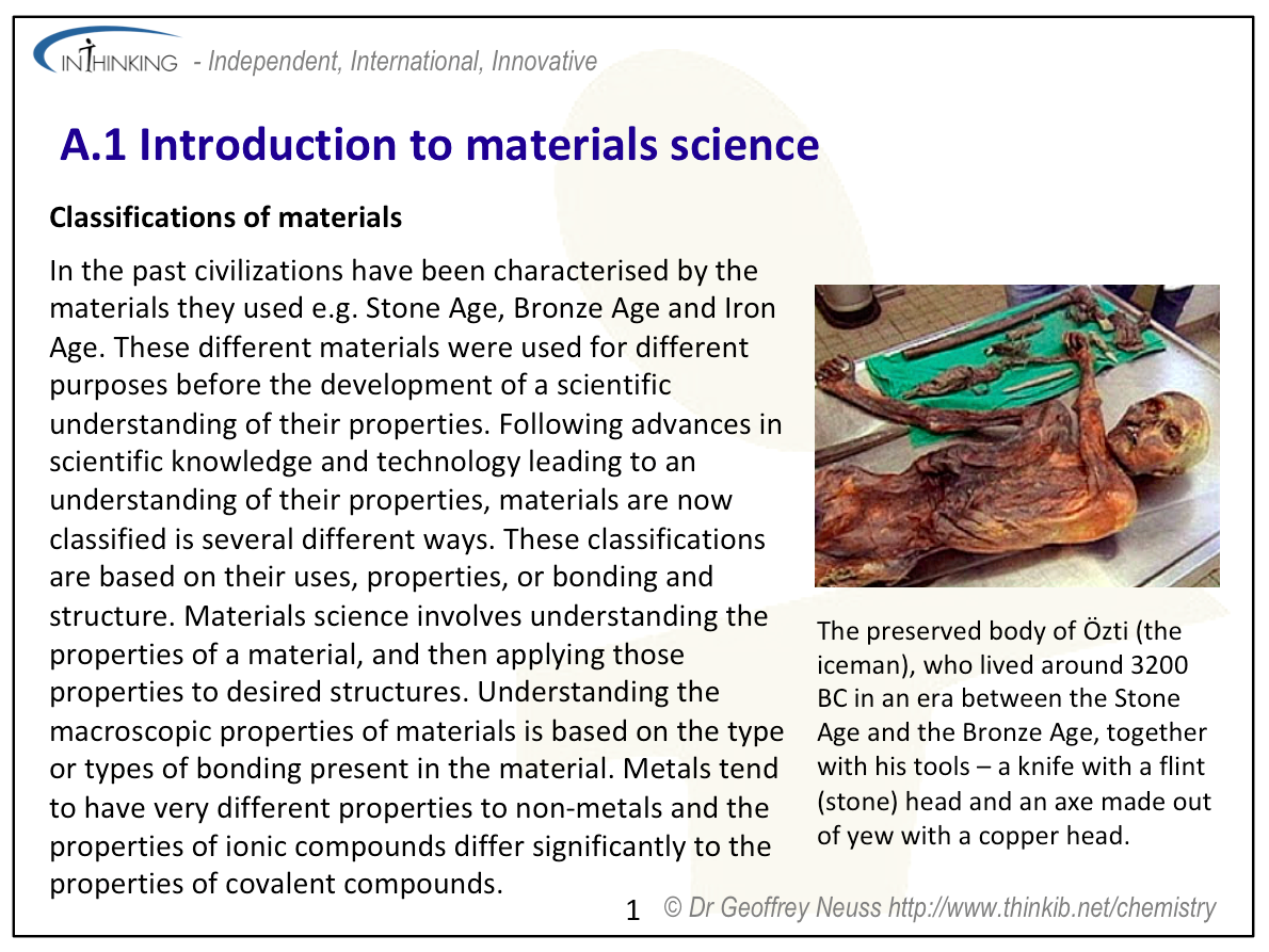 Written specifically for students to provide help and support for the IB Diploma chemistry programme this page provides full coverage of the syllabus content of Option A - sub topic A.1. It encourages you to think critically and provides many questions with full worked answers so that you can monitor and improve your knowledge and understanding.