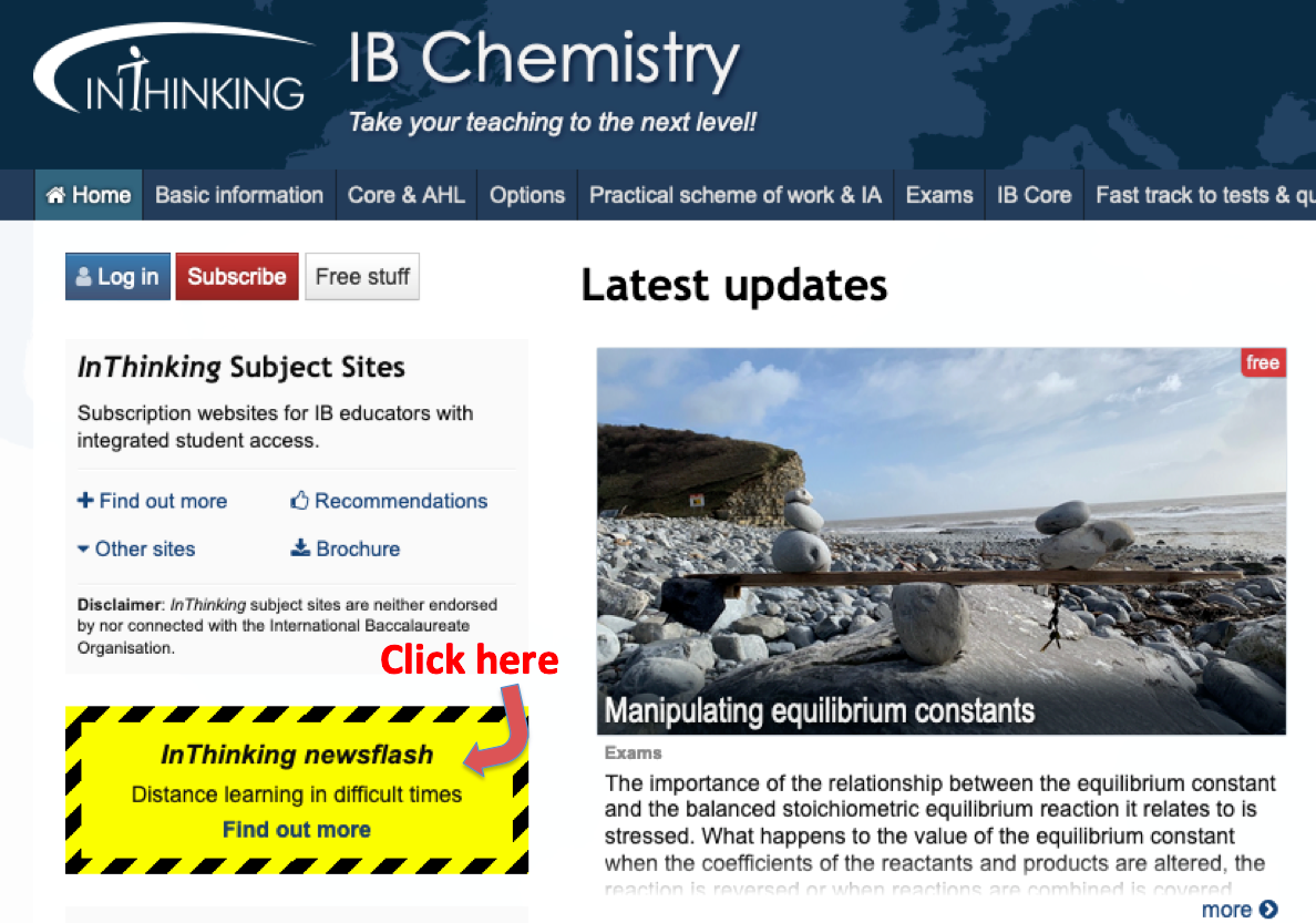 With the spread of the Covid-19 virus, schools in more and more countries are having to close temporarily and teachers are engaging their students in distance learning. This page gives you some tips on how the InThinking chemistry site could be used to help your students through a school closure.