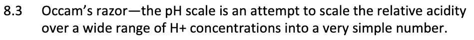 Occam's razor basically states that when presented with different hypotheses to reach the same conclusion the simplest hypothesis is the most likely one. The pH scale has nothing to do with Occam's razor, it is simply expressing the hydrogen ion concentration in a logarithmic scale.