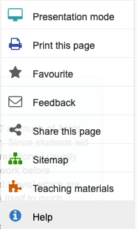 Note that the pages are colour-coded to show which pages are teacher only, which pages can be shared with students (mainly the quizzes, short-answer questions and multiple choice tests) and which pages students always have direct access to.