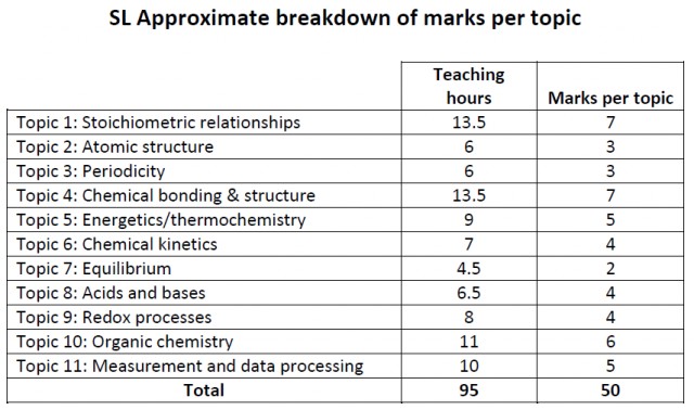 - The maximum mark for the SL paper is 50 marks and it accounts for 40% of the overall mark for chemistry.