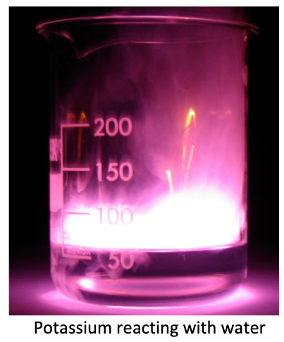 This is why lithium is above potassium in the IB’s activity series as it follows the order of the metals in the electrochemical series (Section 24 in the data booklet). However it still does not explain why potassium reacts so much more vigorously than lithium when it is placed in water.