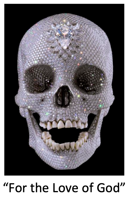 Which artist produced the sculpture "For the Love of God" made out of platinum, carbon (diamonds) and human teeth?