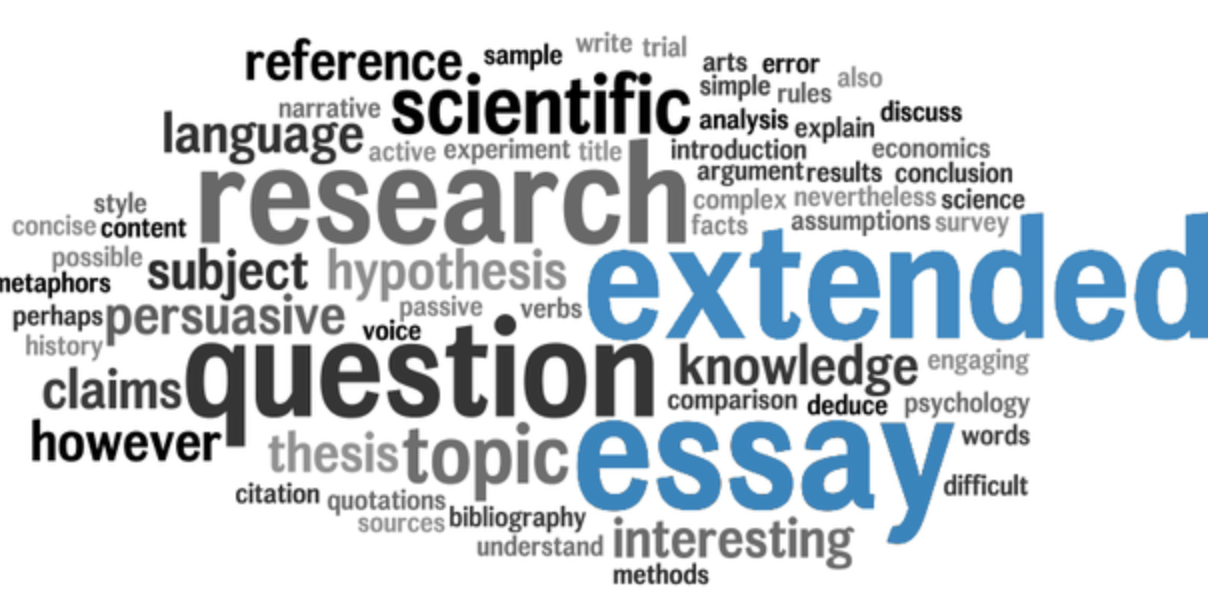 An Extended Essay is a research essay. You will need to consult a variety of different sources and extract relevant material. Once you have settled on a sharply focused research question you will need to develop a reasoned argument (looking at the strengths and weaknesses of claims and counter claims) to reach a conclusion.