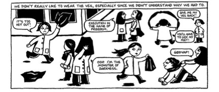 All in all, Satrapi makes use of a broad range of devices that graphic novelists have at their disposal. It’s fair to say she has mastered this medium.
