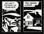 First of all there are the structural features. These include the devices that you see in the image below. These are the kinds of 'nuts and bolts' of graphic novels.