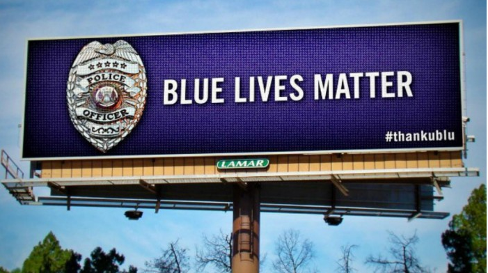 1. Does this billboard and the statement Blue Lives Matter co-opt the message of the #BlackLivesMatter movement?