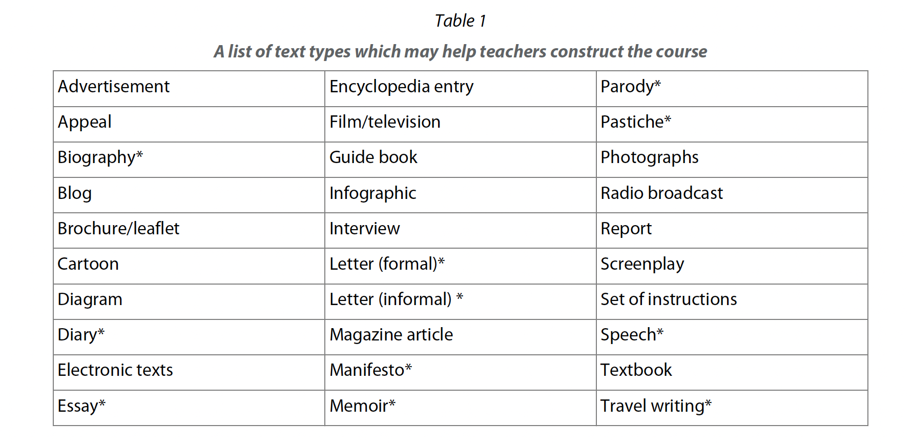 Review the text types that might appear on the exam. See the chart below of the possible types of texts that may appear on your exam. But don't be fooled; just because you know the format and structure of a blog (the conventions of the text type) doesn't mean you can ace your exam!