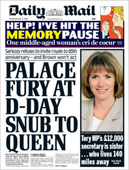 Metonymy is the act of referring to a concept not by its name, but by something intimately associated with it. For example when journalists refer to "Washington's response," they mean the political response of the United States. Similarly we see in this example "Palace fury at D-day snub to Queen." Naturally the palace itself is not furious, but it is a symbol that represents the royal family.