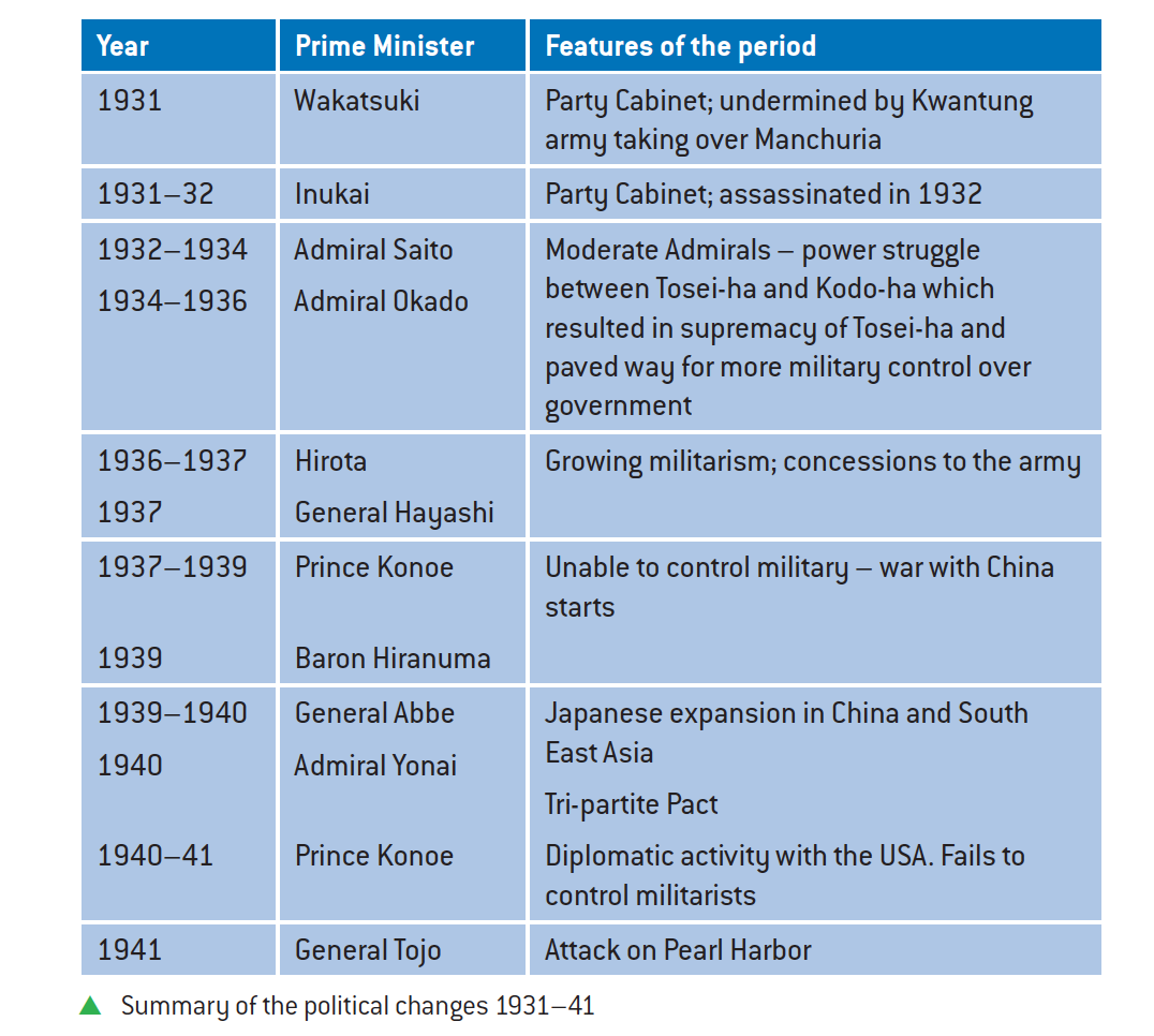Note that developments in Manchuria are key for the growing importance of the army; these are covered in the next section 4. Japan's foreign policy 1931 to 1945