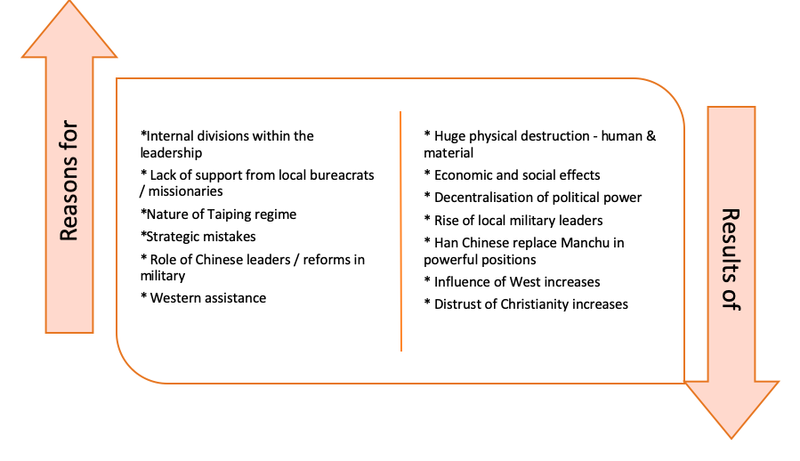 Evaluate the reasons for, and the consequences of, the failure of the Taiping Rebellion.