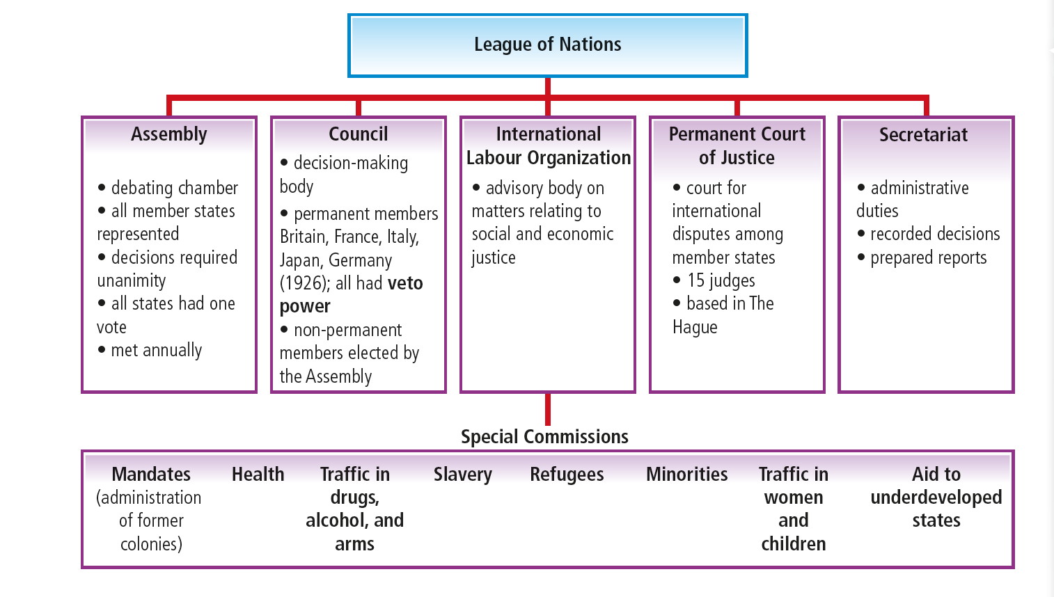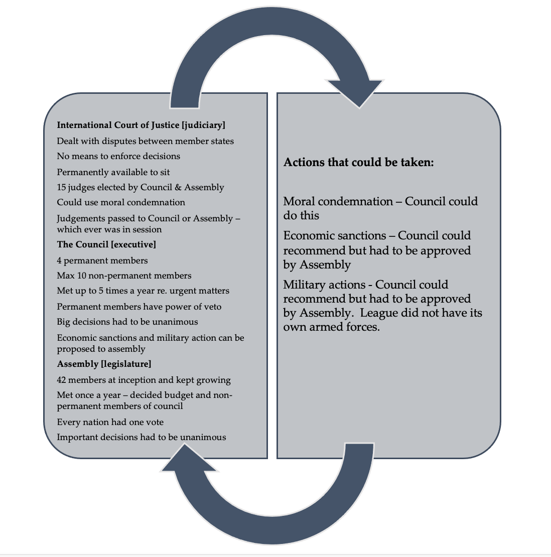 In pairs or small groups review the material above and read through the chart below. Discuss what structural and organizational issues faced the League in pursuing its aims as set out in the Covenant.