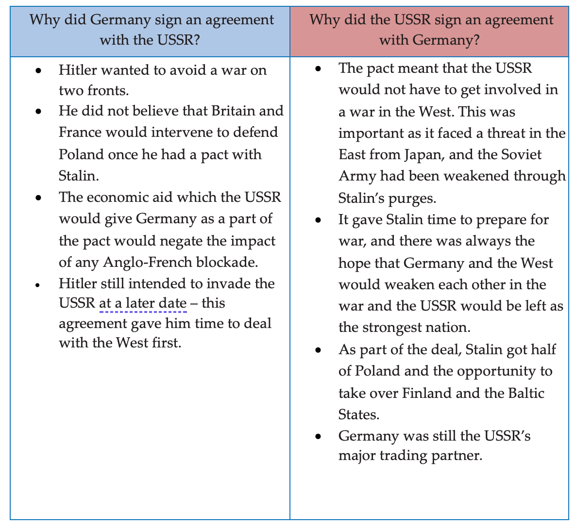 In pairs discuss the reasons that (a) Britain and France and (b) Hitler would have had for wanting an agreement with the Soviet Union.