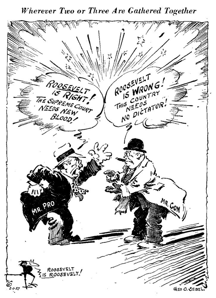 - What do the two cartoons below indicate about reaction to Roosevelt's proposal for the Supreme Court?